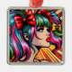 Colourful cute pop art comic style girl with pigtails and bows in her hair.