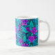 Pretty elegant pattern of purple, blue, teal, turquoise and green flowers and foliage personalised coffee mug.