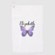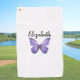 Pretty purple butterfly with custom name ladies golf towel