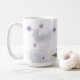 romantic purple and white flowers with some green leaves botanical coffee mug.