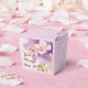 Introducing our enchanting Customisable Party Favour Box, the perfect addition to elevate any celebration. This exquisite favour box boasts a beautiful floral design, artfully composed with soft purple hues and gold accents that exude elegance and sophistication. The delicate flowers intertwine gracefully, creating a mesmerising backdrop that captivates and charms.