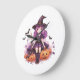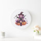 Pretty Purple Haired Witch Pumpkins & Bats Large Clock