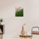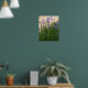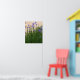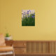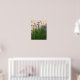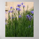 Decorate a living space with this poster print that features a photographic image of pretty blue Irises with their lush, green foliage growing against a light coloured stucco wall. A lovely, floral image! Select your poster size and other options as desired.