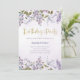 This lovely birthday party invitation for her features elegant watercolor borders with pretty purple vintage lilac flowers, and plenty of watercolor foliage and botanical green leaves. They decorate a simple white background with subtle purple watercolor splashes, and modern gold script. The back of the card has a spot for a scannable QR code so guests can easily rsvp or visit a website for more details. The perfect way to invite friends and family to celebrate!