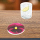 I'm not sure how much moisture these will soak up, haven't had a chance to try them out, but they look good and I like the cork backing. The printing is fine ~ and really looks cool with an artisan's hand made "Hurricane Martini" glass sitting on top of my painting (on the coaster) in my studio.