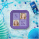 Cool 2 photo square birthday party paper plate in pretty purple for a little girl or toddler. Celebrate your child's birthday with cute photographs of them on these add your own kids photograph plates. Add their name and age.