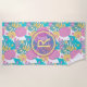 "Pretty Purple Pineapples and Blue Tropical Leaves" is a lovely monogram beach towel. The design features a lovely purple pineapple pattern with blue leaves on a white backdrop. So lovely, buy matching towels for your friends and take a girls trip together!