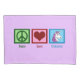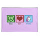 Peace Love Unicorns gift with a peace sign, heart, and a beautiful unicorn with a purple mane.
