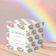 Pretty rainbow abstract pattern wedding square favour box with two beautiful arcs of colour around your names and date. These simple colourful boxes are perfect for a classy LGBTQ couple getting married in the afternoon. Beautiful wave pattern.