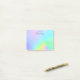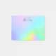 Colourful holographic prismatic style abstract pattern with pastel colours in turquoise blue-green, yellow, pink and pastel blue. Personalise with your name or message in cursive script font lettering.