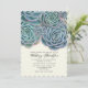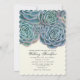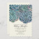 Succulents wedding breakfast invitation. Special friends and family gather before the wedding, or the day after, to celebrate with the couple. This invitation contains a wide country floral border in beautiful blue-green colours. These succulents are commonly known as hens-and-chickens and grow as a ground cover in gardens. This stationery design captures their beauty and is appropriate for any summer / outdoor / country themed celebration. The scalloped border can be changed.