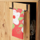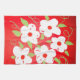 Stylish tea towel with white flowers accented in green and red. The white flower can be changed to any colour to match your decor.