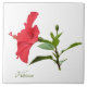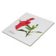Pretty floral ceramic tile; a bright red hibiscus bloom on white tile