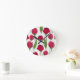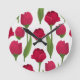 Pretty Red & Pink Botanical Roses Floral Round Clock
