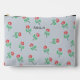 Pretty Red Rose Pattern Pastel Blue Personalised Accessory Pouch