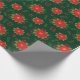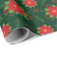 Pretty Red Winter Poinsettia on Green Pattern Wrapping Paper