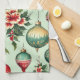 Pretty Retro Holiday Ornaments and Flowers Christmas Kitchen Towel