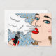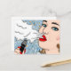 Pretty pop art style retro beautiful woman vaping blowing smoke.