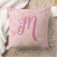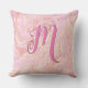 Pretty Rose Quartz Marble and Gold Home Decor Pillow, featuring a customisable pink monogram.