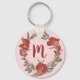 Pretty Rosebud Blossom Wreath Modern Monogram Key Ring