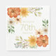 Pretty and feminine 70th birthday party paper napkins designed with beautiful rust, yellow and white flowers with leaves and greenery, and customised with your name and age. Text is fully customisable, so these paper napkins can be designed for any age.