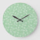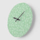 A pretty Round Wall Clock, with a pattern of Light Green Shamrocks outlined in White, on a Light Green background. Part of the Posh & Painterly 'Shamrocks' collection, this pattern can be adjusted to fit any Wall Clock.