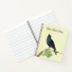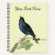 This spiral notebook is pale yellow with a pretty singing blackbird sitting on a tree branch with leaves beside a caterpillar. Customise your text at the top with the template on the front.