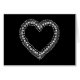 This pretty, lacy looking heart is made of little skulls and bones on a black background.