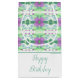 Personalise the happy birthday text on this lovely flower patterned gift bag to suit anyone or any special occasion, white background and stripe can be switched to any colour to suit your very own style, and all elements are removable. Colours are green, teal, lime, purple and a smidge of pink.