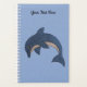 This planner is light blue with a pretty sparkling dark blue and white jumping dolphin with a black and white swirl eye on the front and back. Customise your text at the top on the front with the template.
