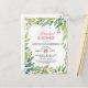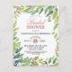 This pretty spring greenery bridal shower invitation postcard is so fresh and sweet. The design features bright flowers in pink and blue with botanical greenery accents that frame the shower invite. The back of the bridal shower postcard has a soft blush pink background with spring flower bouquets. So sweet and elegant for your event.