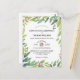 This pretty spring greenery wedding invitation postcard is so fresh and sweet. The design features bright flowers in pink and blue with botanical greenery accents that frame the wedding invite postcard. So sweet and elegant for your event.