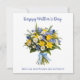 A beautiful greetings card for Mother's Day, illustrated with a pretty bouquet of Spring flowers tied with a blue ribbon. The greeting 'Happy Mother's Day' appears at the top in elegant script typography. Personalise with your name(s) at the bottom of the card, for a stylish individual touch. The back of the card is patterned with small bouquets. With elegant botanical charm, this card is ideal for lovers of flowers and nature.