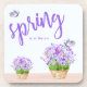 Pretty coaster welcomes spring with colourful typography, flowers and butterflies.