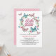 PRETTY SPRING FLORAL BUTTERFLY WREATH BABY SHOWER invitation in pink green and blue watercolor tones with changeable pink polka dots backgorund.