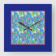 Pretty Square Wall Clock, Spring Blossoms, Blue Clock