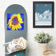 This is my original photographic artwork of a sunflower close up, processed in an artsy illustrated style, in vivid blues and yellow tones. The image is placed on a large sticker, which will make your things stand out as unique. This sticker is 8 inches by 8 inches, however you may change size to larger or smaller, if desired. The are quality product that will not leave sticky goo on your things and printed with inks that won’t fade. Put them on anything you want to personalise and decorate or give as a gift.