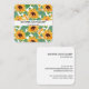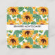 A business card with a cute summery pattern. Pretty yellow sunflowers surrounded by green leaves in a repeating pattern.