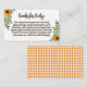 Sunflower books for baby baby shower insert card with sunflowers, yellow and mint flowers, and berry sprigs with lots of little orange berries. The floral gender neutral books for baby card features a pretty illustration of flowers and greenery, with orange gingham printed on the back for a rustic country look perfect for a fall baby shower.