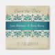 Elegant save the date magnet in a beige satin look, with pretty teal damask design. Customise with your information as a lovely way to announce your upcoming marriage.
