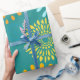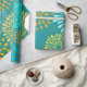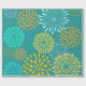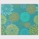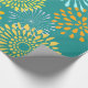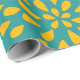 Pretty Teal Orange Flower Line Art Pattern Wrapping Paper