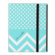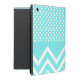 Stylish fresh looking iPad folio style case is done in a turquoise blue, with small white polka dots, on top, and bold chevron zigzags, on the bottom. Personalise the black text for yourself or as a beautiful gift idea.