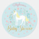 Pretty Unicorn Aqua Gold Glitter Baby Shower Classic Round Sticker