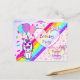 Personalise these adorable girl's birthday party invitations with a magical unicorn, hearts, bows, balloons, sprinkles, butterfly and rainbow. Pink, purple, blue, yellow and orange girl's birthday.