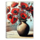 Vase of flowers. Red poppies in a white vase sitting on a table. Pretty comic book style cartoon Poppies.