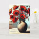 Thinking of you card. Vase of flowers. Red poppies in a white vase sitting on a table. Pretty comic book style cartoon Poppies.