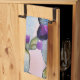 Pretty watercolor cactus and cactus blossoms in purple kitchen towel.