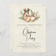 A Christmas invitation with a pretty deer laying down surrounded by leafy flora. Rustic Boho style design.
