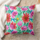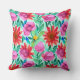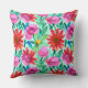 Green, pink, blue and red watercolor flowers and foliage pillows.