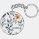 Whimsical soft orange watercolor florals and dusty blue leaves wrap around a custom name on this elegant, personalised keychain. Pretty and practical, it adds charm to your keys—or clip it to a purse, tote bag, or backpack for a stylish touch. It's a lovely everyday accessory, thoughtful gift, or gift wrap accent with a custom twist. Click “Personalise this Template” to make it your own.